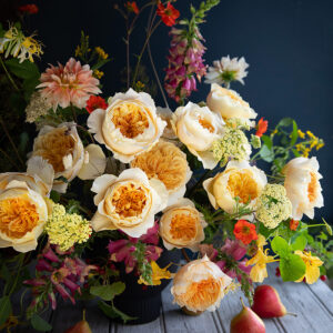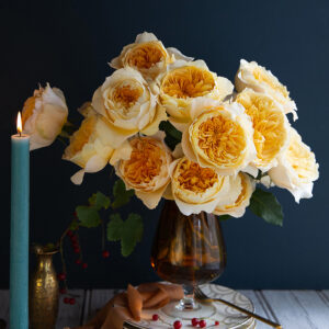 David Austin Effie is a vibrant rose that glows with the warmth of summer and the richness of autumn. Her chameleon-like shades of orange, apricot, and yellow shift beautifully as her creamy buds unfurl into large, cupped rosettes of tangerine radiance, framed by a halo of soft cream petals. Feisty, confident, and completely captivating, Effie carries a delicate tea fragrance that adds the final touch to her dazzling charm.