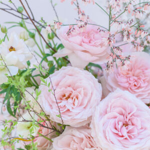Prince Jardinier is the very picture of romance, her blooms unfolding in the softest shade of blush pink. With swirled, velvety petals that open wider than a tea saucer—sometimes even larger than an open hand—she reveals her golden pollen heart with breathtaking grace. Her fragrance is as enchanting as her form: a delightful, lingering perfume that completes her timelessly romantic allure.