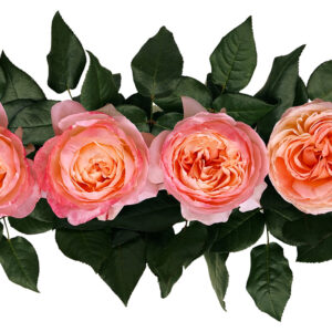 Princess Aiko, whose name means Beloved, is a Japanese garden rose originally bred for the empress. Her blooms glow in a remarkable bright peach, lit with sparks of cream and coral that highlight the concentric curves of her petals. Nearly spherical in form, her medium-sized flowers open generously while holding their graceful shape, framed by deep green foliage that provides the perfect contrast. Radiant and refined, Princess Aiko is a rose worthy of her royal name.