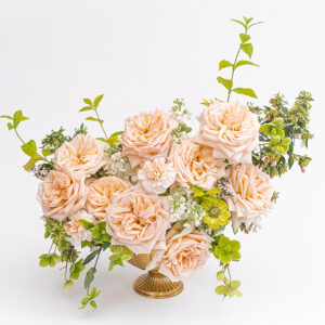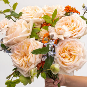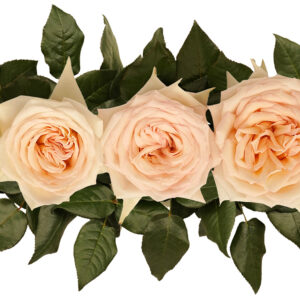 Princess Maya (meaning Night Rain), is a vision of soft romance, her large blooms unfolding in a pure light peach. Her outer petals curl under to form delicate starry points, while the inner petals fold into the classic quartered pattern of a true garden rose. With her gentle fragrance and luminous colour, Princess Maya feels destined for bridal bouquets, a rose that carries grace, beauty, and a touch of celestial charm.