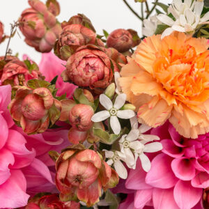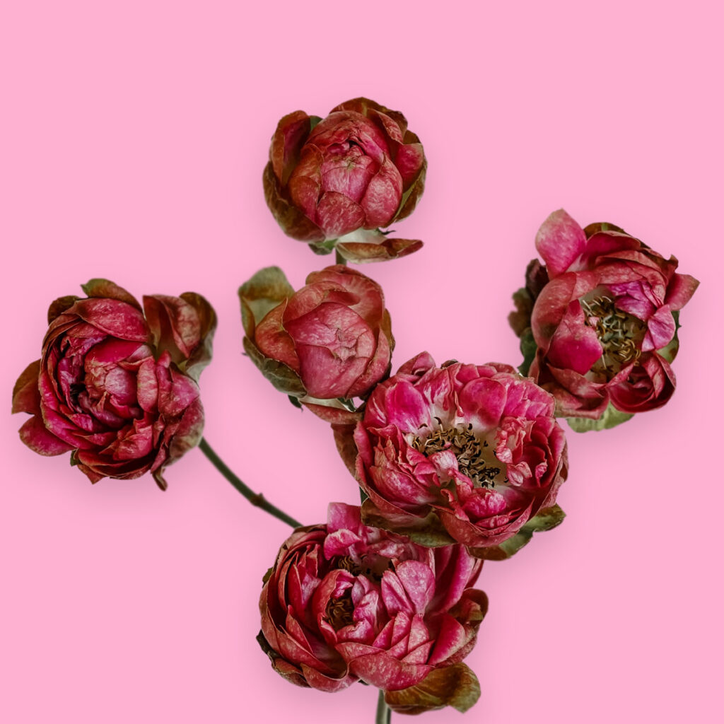 Princess Pinku Spray is a spray rose that radiates lively character, her petite blooms bursting with vibrant colour. At the heart, hot pink petals glow brightly before softening into lighter pinks edged with touches of pale green. Hardy and versatile, her diminutive flowers are perfect for boutonnieres, body flowers, or adding playful sparks of colour to bouquets. Full of energy and charm, Princess Pinku is a rose that makes every arrangement come alive.
