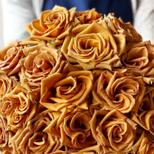 Toffee is a feast for the eyes, her velvety petals unfurling in layers of warm orange, amber, and deep caramel. This mesmerizing gradient evokes the richness of her namesake, a rose as decadent as it is beautiful. With a fragrance touched by sweetness and blooms that glow with burnt-orange warmth, Toffee stands out as a unique and irresistible treasure in any arrangement.