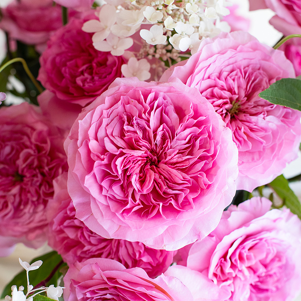 Trinity Spray roses are delicate creamy-pale pink spray roses in a large cluster.